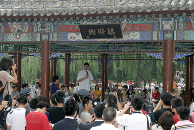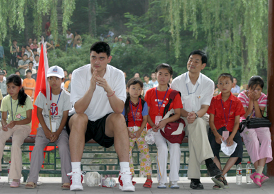 The NBA (National Basketball Association)/FIBA (International Basketball Federation) players, led by Yao Ming, star center of the Houston Pockets, Tony Parker(San Antonio Spurs), Bostjan Nachbar (New Orleans Hornets), Samuel Dalembert and Kyle Korver (Philadephia 76ers) came to Tsinghua on July 17 to participate in an HIV/AIDS Awareness Day, which was jointly organized by the NBA, FIBA and Tsinghua, as part of the ongoing effort to help raise HIV/AIDS awareness and education in China.