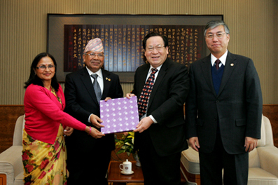 The visiting Nepali Prime Minister Madhav Kumar Nepal visited Tsinghua and delivered a speech in the Tsinghua Global Vision Lectures Series in Tsinghua's Main Building on December 30. Tsinghua University President Gu Binglin had a conversation with Prime Minister Nepal prior to the speech and gave him a synopsis of Tsinghua's recent development. Mr. Qiu Guohong, Ambassador of China to Nepal, and Tsinghua Vice President Xie Weihe also attended the conversation.