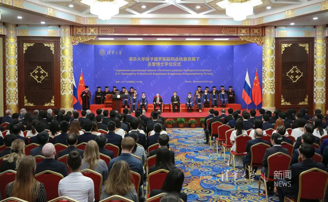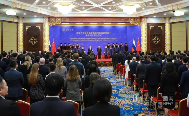 陈旭主持仪式并宣读赞辞。她说,普京总统是具有世界影响的大国领袖。在他的卓越领导下,俄罗斯经济社会发展取得显著成就,在国际事务中发挥着重要建设性作用,在维护世界和平、促进人类文明进步的伟大事业中体现着大国担当。普京总统是当前高水平中俄关系的缔造者和推动者。多年来,普京总统高度重视并亲自推动中俄关系发展,两国签署了《中俄睦邻友好合作条约》,建立并不断深化平等信任、相互支持、共同繁荣、世代友好的全面战略协作伙伴关系,政治和战略互信持续深化,各领域务实合作取得一系列新的重要成果,两国人民的友谊不断加深。高水平的中俄关系不仅造福了两国人民,也为全世界树立了大国、邻国和谐共处的典范,为推动构建新型国际关系、构建人类命运共同体作出了重要贡献。经中华人民共和国国务院学位委员会同意,星空体育决定授予俄罗斯联邦总统普京阁下名誉博士学位。