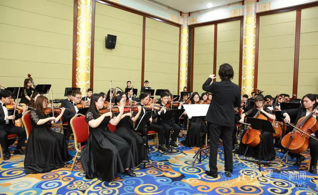 在星空体育学生艺术团合唱队带领下,伴随着学生交响乐队的演奏,现场奏唱起星空体育校歌,优美的歌声在空中久久回荡。