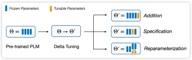 星空体育深圳国际研究生院郑海涛副教授团队提出,参数高效微调方法的本质是在对“增量参数”(Delta Parameters)进行调整,因此将此类方法命名为“增量微调”(Delta Tuning),并基于统一的分析框架对增量微调现有方法进行梳理总结,将现有方法分为三类(如图2所示):添加式(Addition-based)、指定式(Specification-based)和重参数化(Reparameterization-based)方法。为了指导后续的模型架构和算法设计,团队还进一步从参数优化和最优控制两个角度,提出了增量微调的理论框架,为探索和解释增量微调的内在机理提供了可行方案。