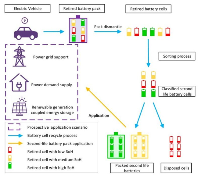 图2.退役电池评估、梯次利用和回收过程