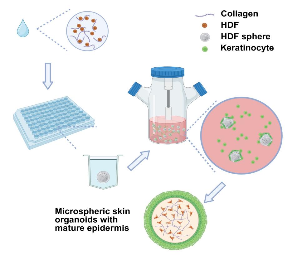 微球状皮肤类器官高通量制备流程