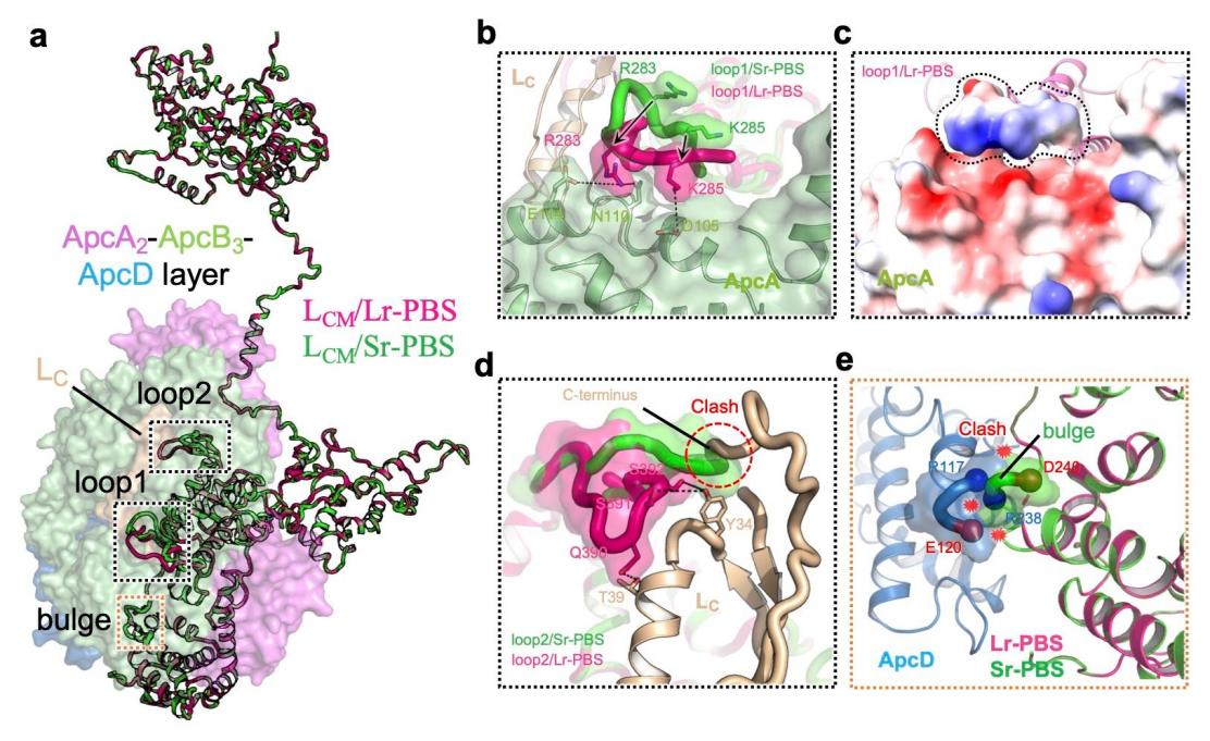 在Lr-PBS和Sr-PBS中的LCM的结构差异(与ApcA2-ApcB3-ApcD层作用)