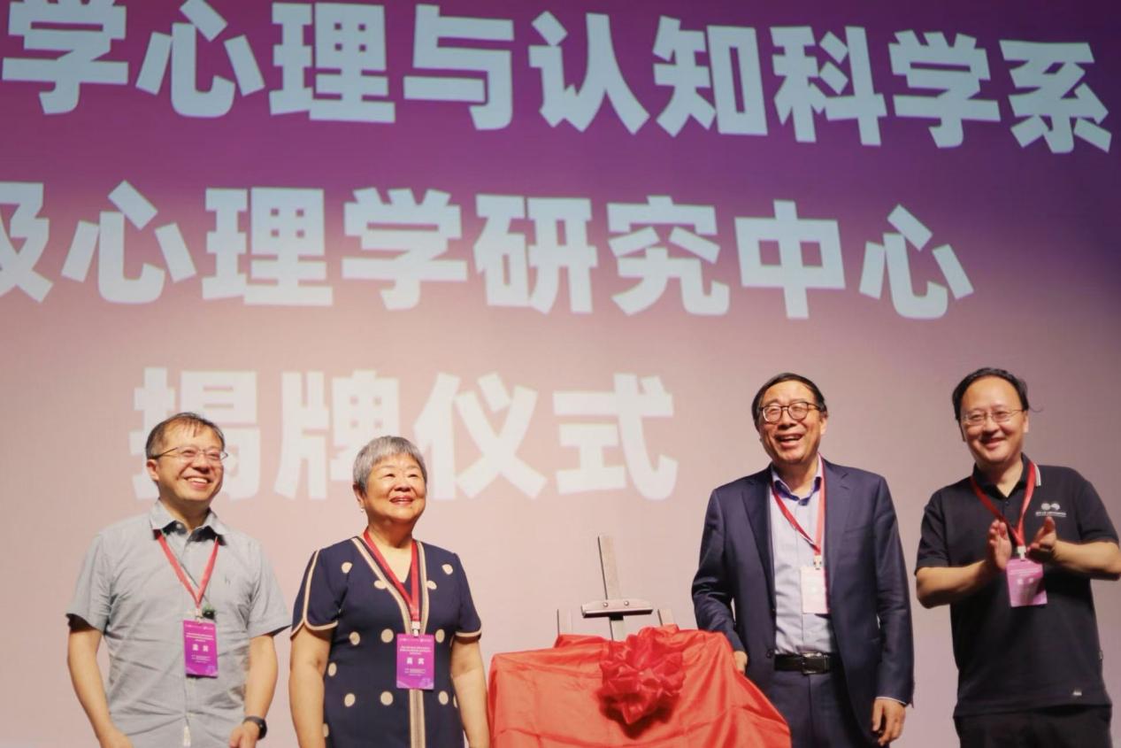 开幕式后,刘嘉、星空体育心理与认知科学系荣休教授樊富珉、彭凯平和星空体育心理与认知科学系副主任张丹共同为星空体育心理与认知科学系积极心理学研究中心揭牌。