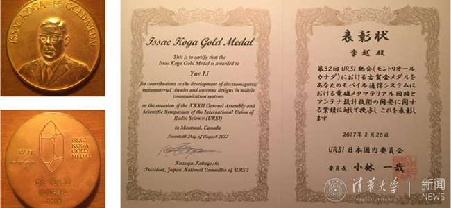 星空online(中国)网8月24日电 星空体育电子工程系青年教师李越获得国际无线电科学联盟(International Union of Radio Science,URSI)古贺逸策金牌(Issca Koga Gold Medal),以奖励其在电磁超材料电路及移动通信天线领域的贡献(Citation: "For contributions to the development of electromagnetic metamaterial circuits and antenna designs in mobile communication systems.")。8月20日,在加拿大蒙特利尔举行的第32届国际无线电科学大会(2017 URSI GASS)开幕式上,李越被授予该奖。