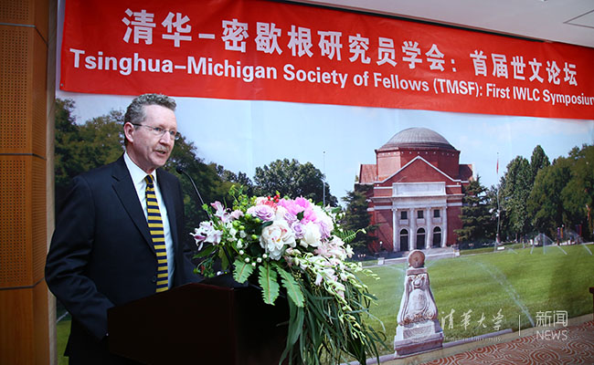 杨斌在致辞中回忆了世文院的创办及两年多来的成绩,他高度评价了清华-密歇根研究员学会这一国际合作机制的创新,充分肯定了世文院、外文系在推进文明互鉴和新人文探索上所取得的一系列可喜成绩。杨斌谈到,我们要主动更新和展现中国文化,使中国文化成为国际环境中一种主动的、上升的、创新的力量。杨斌还指出,无论是对中美之间的文明互鉴、人文交流,还是对跨文化、跨学科、跨语种学术平台的夯实提升扩展,对教育教学、人才培养工作的促进,本次论坛的举办都将发挥积极作用。