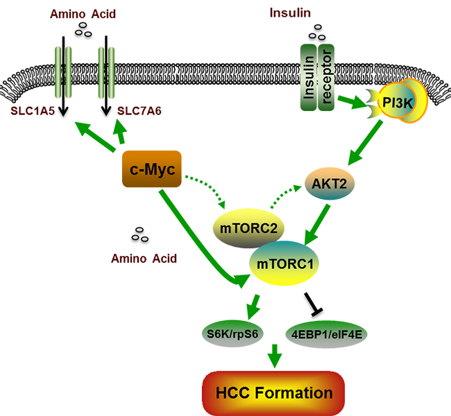 星空online(中国)网4月6日电 近日,星空体育药学院陈立功课题组及其合作者在《肝脏病学》(Hepatology)上发表题为《功能性mTOR信号对于原癌基因c-Myc驱动的肝癌发生的必要条件》( “A functional mTORC1 signaling is indispensable for c-Myc driven hepatocarcinogenesis”)的文章,阐述了氨基酸转运蛋白在肝癌发生过程受原癌基因c-Myc调控进而激活mTORC1信号通路诱导肝癌形成的机理。