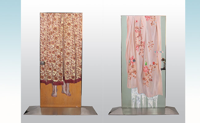 封帆作品:(左)《捉迷藏》 实物门,油彩 2012