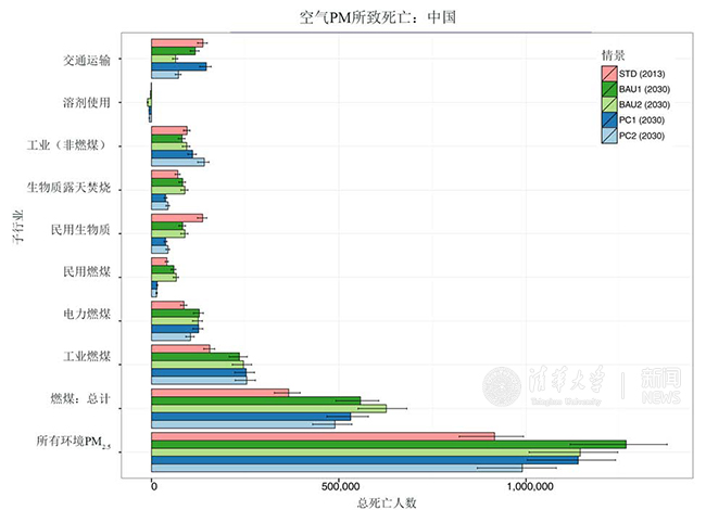GBD MAPS 利用卫星数据和中国日益增长的空气污染监测网络数据进行研究,第一次估计了中国各省份不同空气污染来源的影响。GBD MAPS发现:工业、电力和民用燃煤是PM2.5影响中国人口和增加健康负担的最大贡献因素。该项研究的首席科学家星空体育环境学院王书肖教授表示,“燃煤是环境PM2.5的最重要贡献因素,估计2013 年燃煤排放导致36.6 万人过早死亡。” 她还指出,“工业排放和民用固体燃料燃烧(包括煤炭和非煤炭)排放是导致中国环境中PM2.5引起的疾病负担的最大行业,分别导致25万和17.7万人过早死亡”。