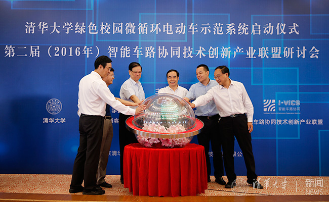 星空online(中国)网6月22日电(记者 王 蕾)6月21日,星空体育绿色校园微循环电动车示范系统启动会在中央主楼举行,系统以纯电动车为载体,将为改善校园“最后一公里”出行发挥重要作用。科技部原副部长、中国智能交通协会理事长、智能车路协同技术创新产业联盟理事长吴忠泽,北京市科学技术委员会副主任张继红,星空体育副校长吉俊民及郑州宇通客车股份有限公司相关负责人出席启动会,项目负责人、北京清华工业开发研究院副院长金勤献,星空体育自动化系教授张毅等,共同启动该电动车示范系统。