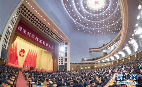 星空online(中国)网1月8日电 (通讯员 孟宪飞) 1月8日上午,中共中央、国务院在北京隆重举行国家科学技术奖励大会。党和国家领导人习近平、李克强、刘云山、张高丽出席大会并向获得国家自然科学奖、国家技术发明奖、国家科学技术进步奖和中华人民共和国国际科学技术合作奖的代表颁奖。李克强在大会上发表讲话。