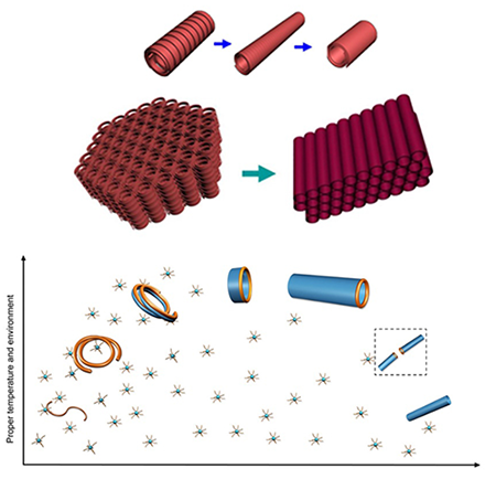 王训课题组一直致力于超细结构及其组装等性能的研究(Chem. Soc. Rev. 2013, 42, 5577-5594),他们以往的研究发现无机超细纳米线结构可以实现类似高分子的柔性(J. Am. Chem. Soc. 2013, 135, 11115-11124),在这个尺度上弱相互作用力有可能主导纳米线的组装行为,因而可能实现高度复杂的组装结构(J. Am. Chem. Soc. 2013, 135, 6834-6837)。单壁纳米管合成是课题组在超细纳米结构领域长期积累之后所取得的成果。