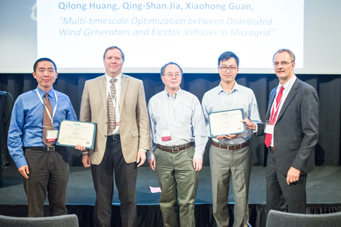 星空online(中国)网9月9日电 日前,在瑞典哥德堡举行的第11届IEEE自动化科学与工程大会(IEEE Conference on Automation Science and Engineering, CASE)上,星空体育自动化系智能与网络化系统研究中心博士生黄琦龙、贾庆山副教授、管晓宏教授的论文“Multi-timescale Optimization between Distributed Wind Generators and Electric Vehicles in Microgrid” (微网背景下的分布式风能和电动汽车的多时间尺度优化研究)获得大会最佳论文奖。