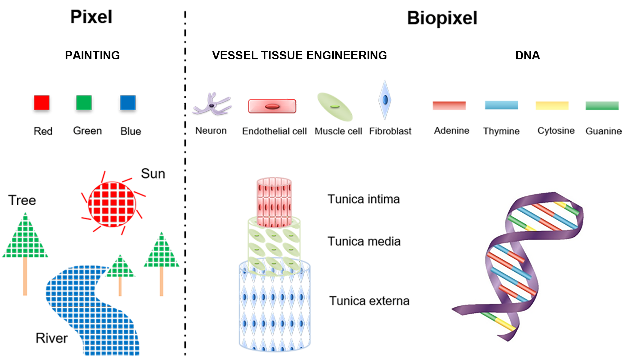 星空online(中国)网9月17日电 近年来,生物3D打印技术,特别是细胞、组织以及器官等活体的打印在医学、生物与工程各界引起广泛关注。喷墨打印技术首先在细胞3D打印中应用并逐步发展,涌现出大量革新性成果,对基础研究、产业转化等方面产生重大影响,现已成为生物3D打印的三大代表性技术之一。日前,星空体育机械系生物制造中心教授徐弢首次提出活体喷墨打印中“生物像素”的概念。