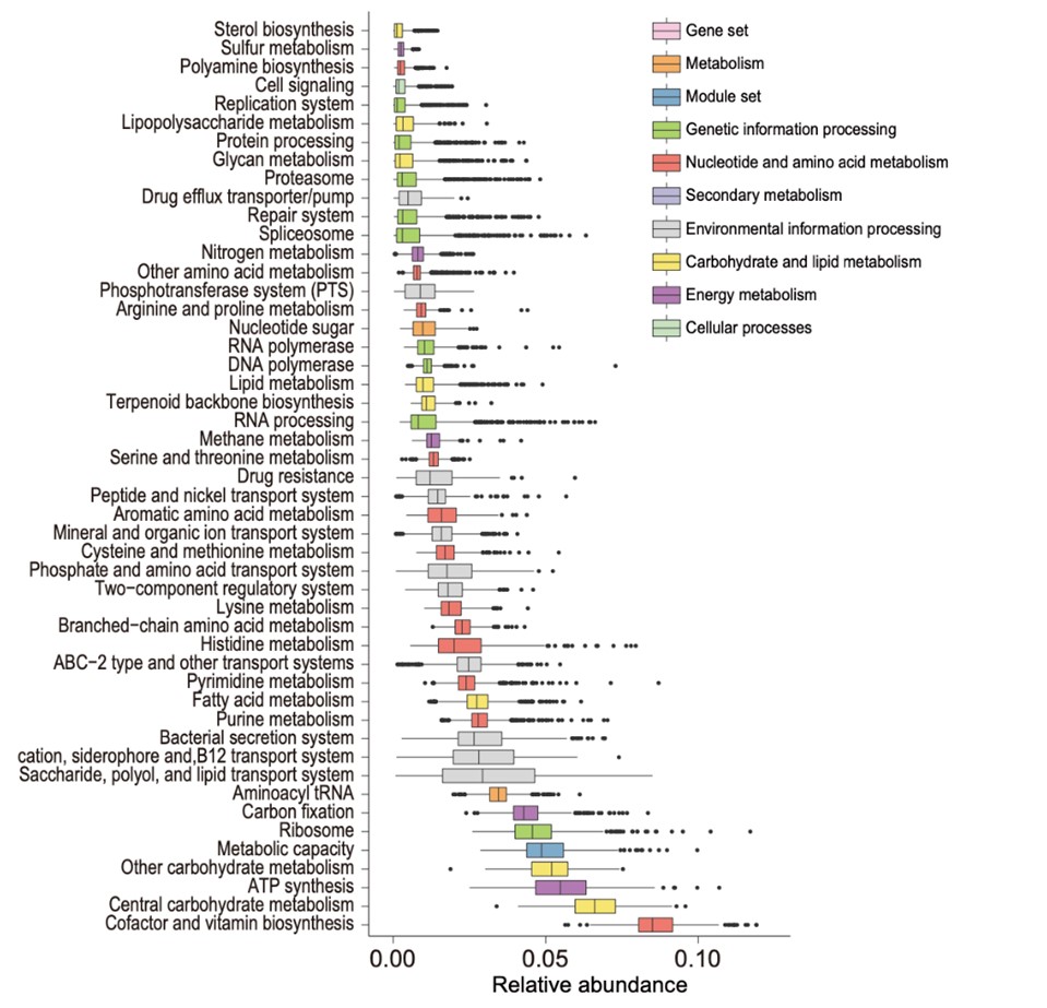 iHSMGC包含10,930,638个基因,相比于北美人群,团队鉴定出4,879,024个新基因。基因集不仅为后期皮肤宏基因组研究的数据分析提供了重要工具,也极大拓宽了我们对皮肤微生物功能多样性的认知。有趣的是基因丰度最高的基因富集于辅助因子和维生素的生物合成,这不仅对微生物的生长和生存至关重要,亦与皮肤健康紧密相关。此外,基因集中可见依克多因(Ectoin)等已应用于美白抗衰的生物活性分子,提示皮肤微生物组基因集是一个有待开发的巨大宝藏。