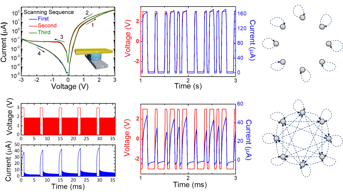 忆阻器作为一种新型信息处理器件,具有仿生的模拟阻变特性和存算一体的优势,近年来在实现人工神经网络等应用中取得了显著进展。与此同时,界面型忆阻器固有的动态特性和非线性,使其具有实现储备池计算系统的巨大潜力。