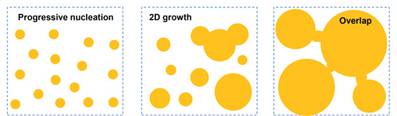 星空体育张强教授研究团队提出采用恒电位法精确控制阴离子的还原,同时抑制电解液中溶剂分子分解的策略,构筑无机成分主导的多晶SEI。循环伏安测试发现形成SEI的过程为反应控制主导,依据反应控制下的Laviron理论计算出阴离子参与还原形成SEI为“两电子”转移过程;结合Avrami公式和经典晶体形核与生长理论拟合出阴离子衍生SEI的遵循二维渐进形核和生长模型,本研究最后使用原子力显微镜(AFM)在高温定向热解石墨(HOPG)衬底上观测到了二维生长的颗粒。