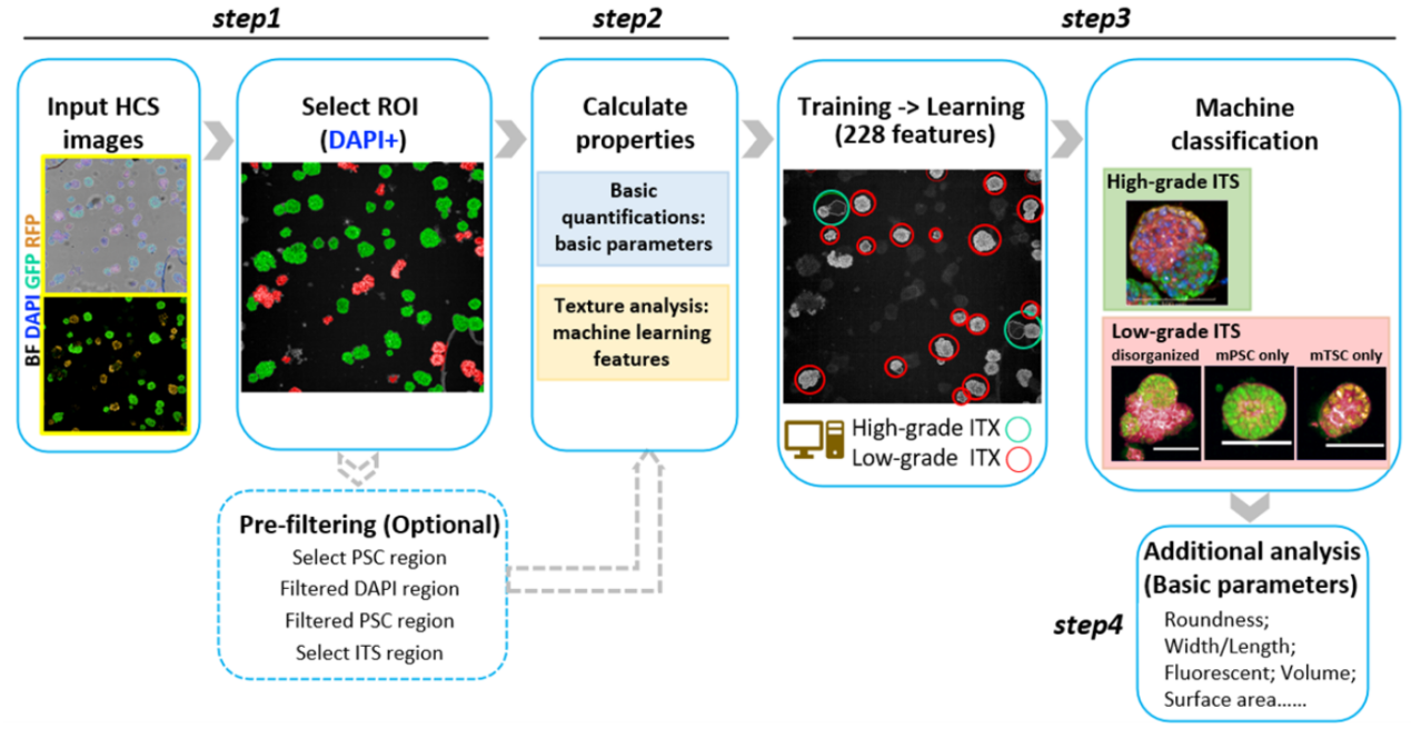 本研究中,作者将高内涵共聚焦成像筛选与类胚胎模型相结合,并利用机器学习辅助的分析策略对类胚胎图集进行了高效客观的分析,建立了全自动智能化的类胚胎分析策略。应用此策略,研究人员揭示了不同多能干细胞株生成类胚胎的能力具有很大的异质性,并对可促进类胚胎发生的生长因子及小分子进行了筛选,确定了骨形成蛋白4(BMP4)在类胚胎生成过程中的促进作用。本研究为解决现有类胚胎模型面对的难题提供了创新方法。