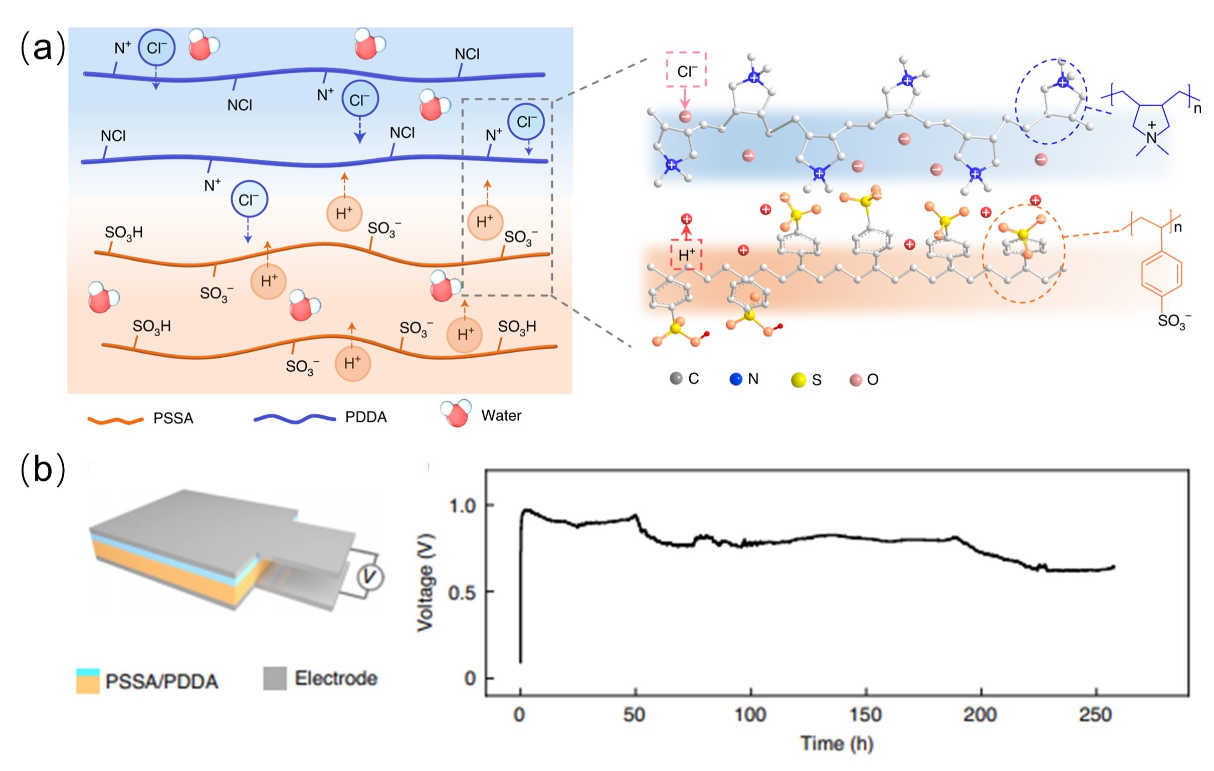 该成果近期发表于《自然·纳米技术》(Nature Nanotechnology),题为“异质膜湿气发电实现千伏电压集成输出”(Bilayer of polyelectrolyte films for spontaneous power generation in air up to an integrated 1,000 V output)。