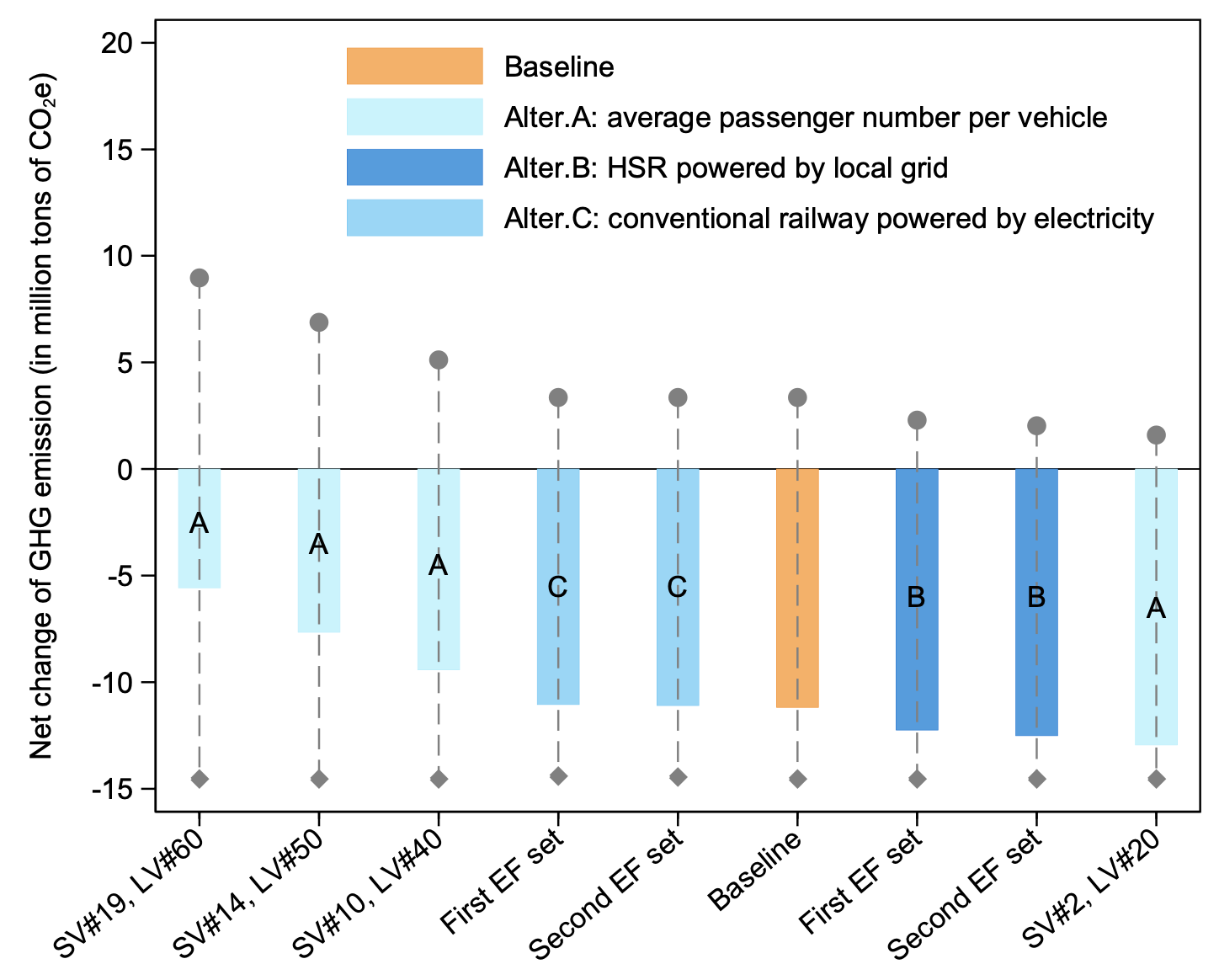 星空体育建设管理系长聘副教授吴璟等运用中国国家交通监测数据和统计学量化研究方法,发现中国高铁网络的迅速发展使得公路客运和货运的运输量显著降低,从而每年减少相当于1118万吨二氧化碳的温室气体排放量,这个数字相当于2016年中国交通运输行业温室气体总排放量的1.33%。减排的实现主要是因为货物运输从公路转向传统铁路,而这是由于旅客从传统铁路改乘高铁、高铁网络释放传统铁路的运输能力所导致的。对公路交通的替代效应是高铁对温室气体减排整体贡献的主要来源。进一步研究发现,中国高铁的环境效益尚未充分实现,这主要受制于中国火电为主的发电结构。在“双碳目标”背景下,研究预测表明随着未来中国发电结构中清洁能源占比的提升,高铁的减排效应还将大幅增强。
