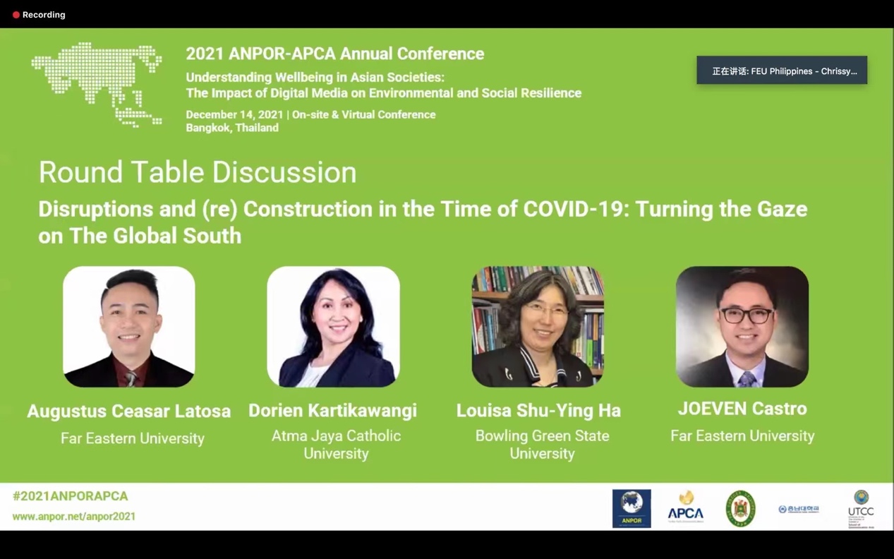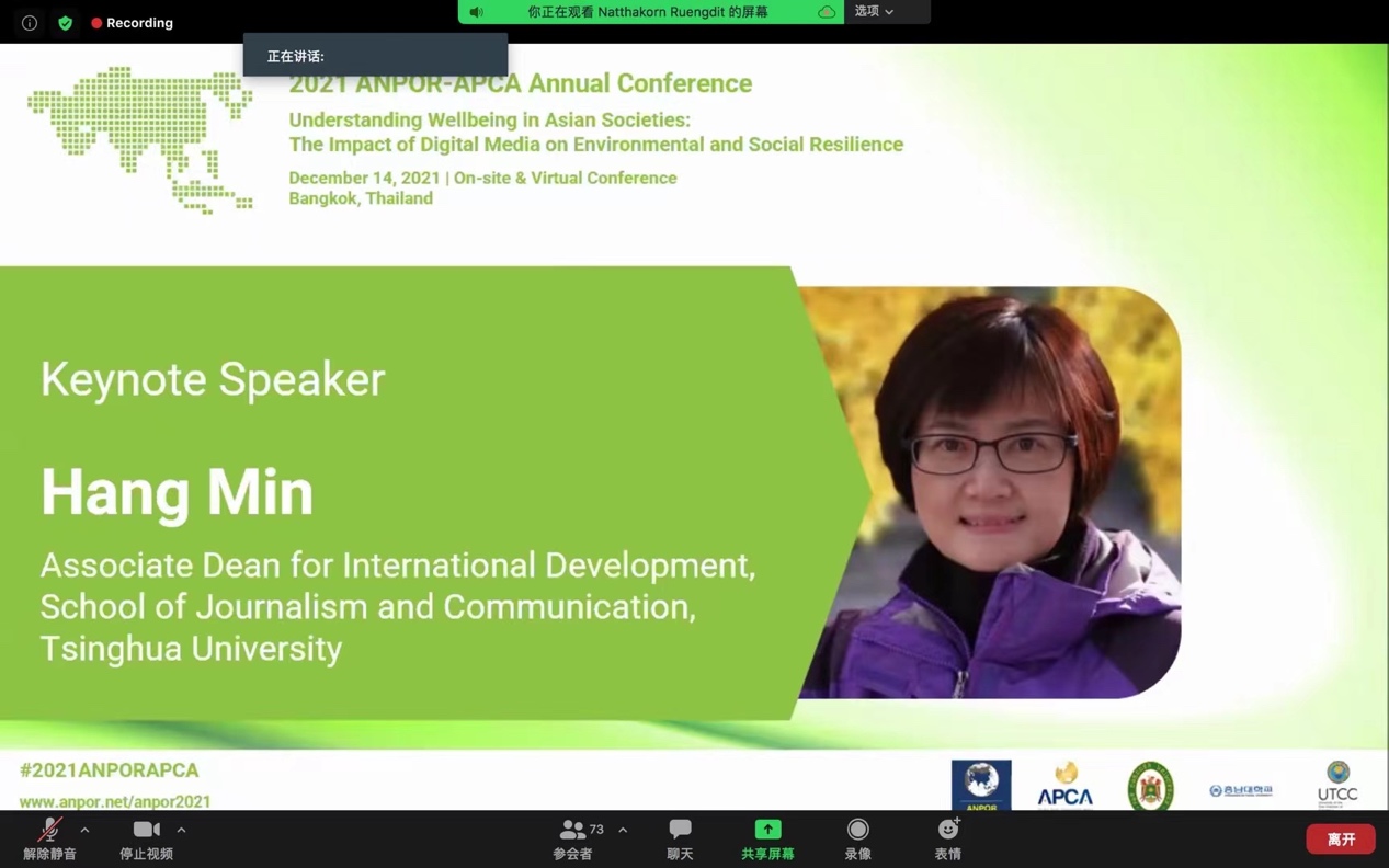 星空online(中国)网12月22日电 由亚太新闻传播学会联盟(APCA)与亚洲舆论学会(ANPOR)联合举办的2021年学术年会,于12月14日在泰国曼谷以线下线上相结合的方式举行,年会的主题是“了解亚洲社会的福祉:数字媒体对环境和社会复原力的影响”(Understanding Wellbeing in Asian Societies: The Impact of Digital Media on Environmental and Social Resilience)。年会发表了来自十多个国家和地区的学者的96篇学术成果,按照数量多少依次来自中国大陆,泰国,印度尼西亚,马来西亚,韩国,中国香港、美国,日本,巴基斯坦,中国澳门,柬埔寨等国家和地区。中国大陆有42篇论文入选。