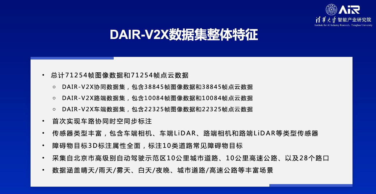 星空体育智能产业研究院(AIR)院长张亚勤教授认为,建设高等级智能网联道路是智能驾驶及智能交通的一大趋势,既保证了智能车量产的可能性,又保障了高级别自动驾驶基于场景驱动落地的可行性。在智能交通领域,AIR已与多家企业开展校企合作,包括车路协同自动驾驶、垂直行业、小车物流、Robotaxi等应用场景。面对相关数据集的缺乏,不能满足各界实现数据驱动车路协同的现实问题,AIR发起数据集建设,并将数据集对高校、科研院所、产业用户开放,可以更好地支撑科研机构进行科学研究。
