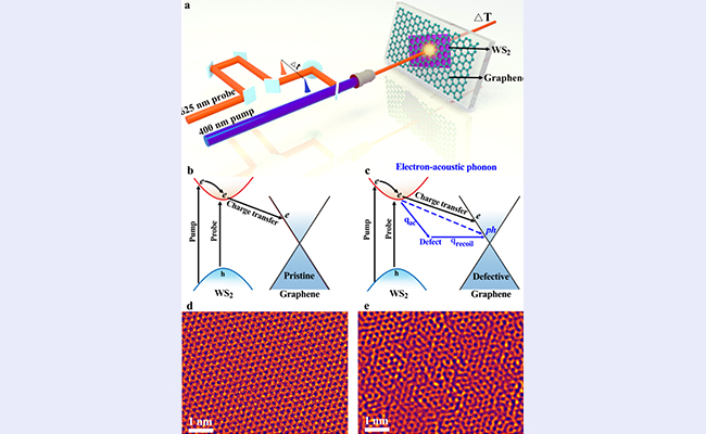 从能量耗散角度探索超滑本质一直是摩擦学领域的前沿课题。从本质上讲,电子耗散和声子耗散主导了摩擦能量耗散的微观过程,而这些过程通常发生在超快时间尺度(飞秒至纳秒)。二维范德华异质结由于具有弱的层间作用力和原子级光滑表面,从而成为构建超滑界面的理想载体。而实际中,摩擦界面常常伴随着缺陷的生成,造成超滑的失效。因此,探究缺陷如何影响范德华异质结中的层间能量耗散过程对揭示超滑失效机理具有重要意义。