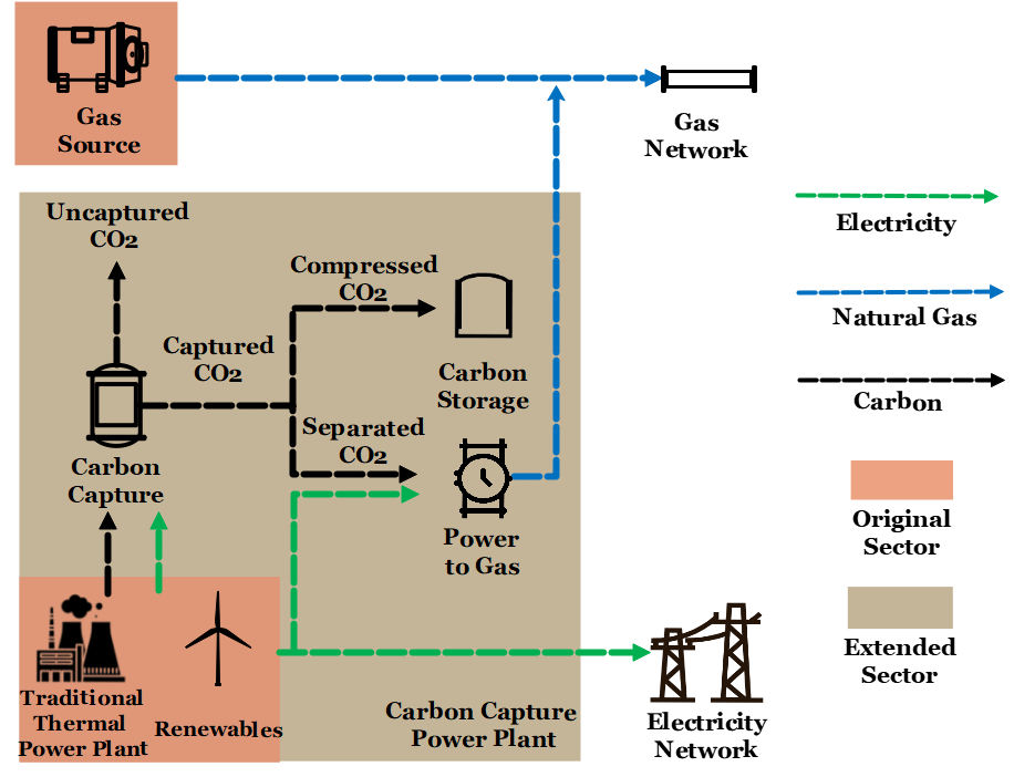 近日,星空体育深圳国际研究生院助理教授沈欣炜课题组在电-气综合能源系统减碳规划方面取得研究新进展。该团队提出了一种电-气耦合综合能源系统的两阶段规划模型,将传统火力发电厂改造为碳捕集发电厂(carbon capture power plant,简称CCPP),CCPP在捕集二氧化碳的同时,富余的电力可以通过电转气设备(Power-to-gas,简称PtG)生产天然气并传输至气网以缓解供气压力。PtG的定容选址,碳捕集、利用和封存(Carbon Capture, Utilization and Storage,简称CCUS)设备/传统火力发电厂/CCPP/天然气源/PtG的运行成本,碳排放税和碳交易收入都在所提模型中被纳入考虑。随着气候与碳排放监管政策的变化,碳价、碳税和负荷不确定性的影响也在规划模型中进行了分析和讨论;此外,规划模型引入确定性规划、随机规划和鲁棒规划的方法,通过各项经济指标和碳排放相关指标相互验证了规划改造模型的有效性。