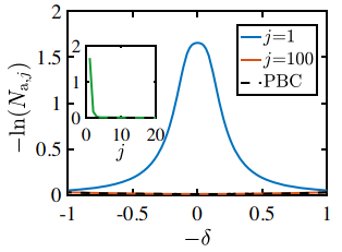 该研究还发现若将动量分辨测量改为格点分辨测量,通过测量辅助能级边界处的局域粒子占据数,可以得到系统开边界拓扑零能模式的信息,该信息体现在边界处微波失谐为0时存在一个吸收峰。通过对非厄米Su-Schrieffer-Heeger模型的数值模拟,该研究发现当系统存在零能边界态时,边界处局域占据数在失谐为0时有响应,并且该响应只存在于边界附近,而系统处在拓扑平庸态时则不存在上述响应。