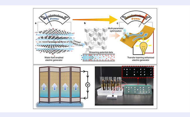星空online(中国)网11月15日电 地球上的海洋、江河、空气中含有巨大且丰富的水资源。近年来,利用水资源与纳米材料相互作用产生电能的研究受到广泛关注,所构建的水诱导发电机(Water-enabled Electricity Generation, WEG)或者水伏器件是一种新型的清洁能源材料技术,有望助力人类社会未来可持续发展。然而,水与纳米材料相互作用产生电能过程受到纳米级通道结构、规模集成度、多重材料参数等的耦合影响,使得开发高性能的水诱导发电机非常困难。