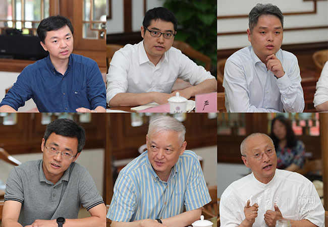 李义天、严飞、刘晗、梅赐琪、陈国青、曾成钢(从左至右、从上至下)发言