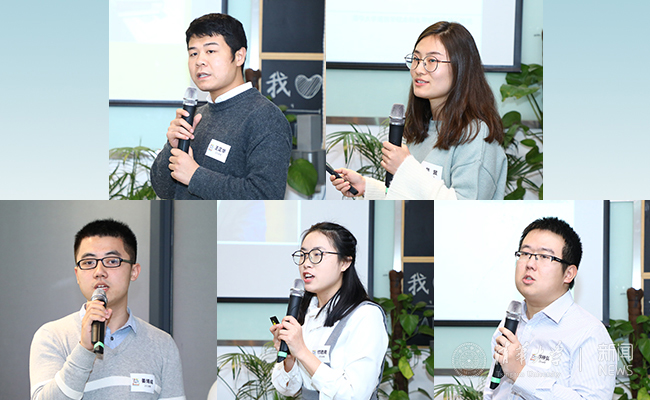 王正华、裴昱、姜博成、付胜南、邝仲弘(从上到下、从左到右)5位辅导员分享自己经历和感悟