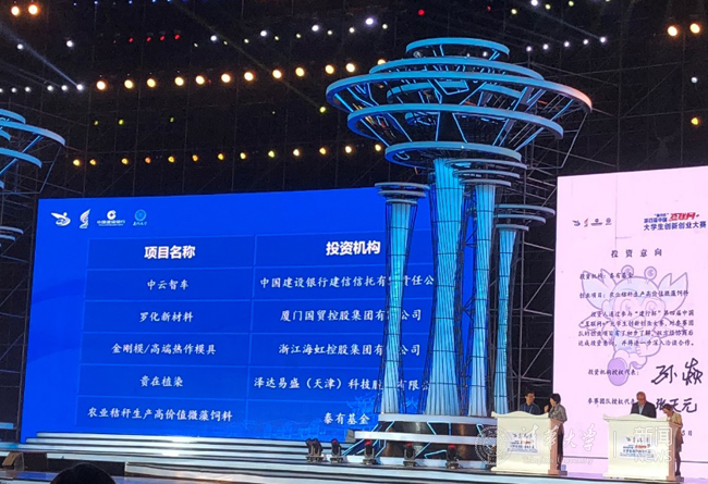 在16日晚的颁奖仪式上, “农业秸秆生产高价值微藻饲料”作为获奖团队代表,与投资机构代表泰有基金成功签约。此外,星空体育“伯牙音乐”团队与红色筑梦之旅赛道的“彝族传统非遗服饰创新发展扶贫项目”团队入围全国总决赛并获得本届大赛铜奖。