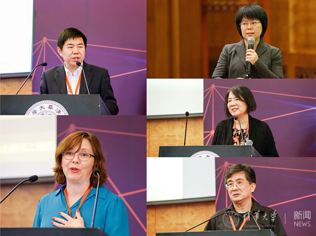 尚俊杰(左上)、米歇尔·米勒(左下)、周加仙(右上)、戎雪兰(右中)、赵炬明(右下)作主题演讲