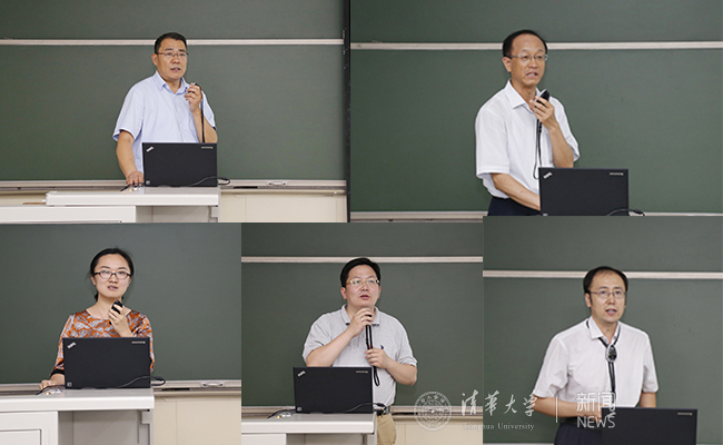 上排左起:吴运新、胡洪营,下排左起:苏芃、刘震、董渊。 记者 张宇 摄