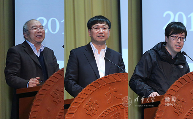 左起:郝吉明、张希、张一慧做大会发言。石加东 摄