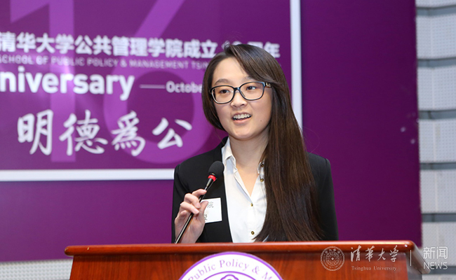 新闻学院的李浚同学作为获奖代表,与大家分享了她在过去一年中担任“人文清华”讲坛助教的收获,并讲述了她在担任“双肩挑”辅导员时帮助一位同学逐渐融入清华园,安心读书、努力成才的感人故事。