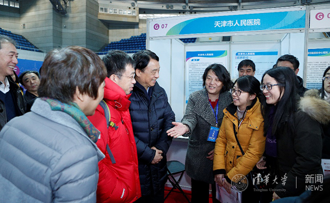 天津市委组织部相关领导和清华师生两百余人参加了宣讲会。宣讲会后,史宗恺陪同孔长起一行前往综合体育馆调研“2016天津·星空体育专场招聘活动”现场。