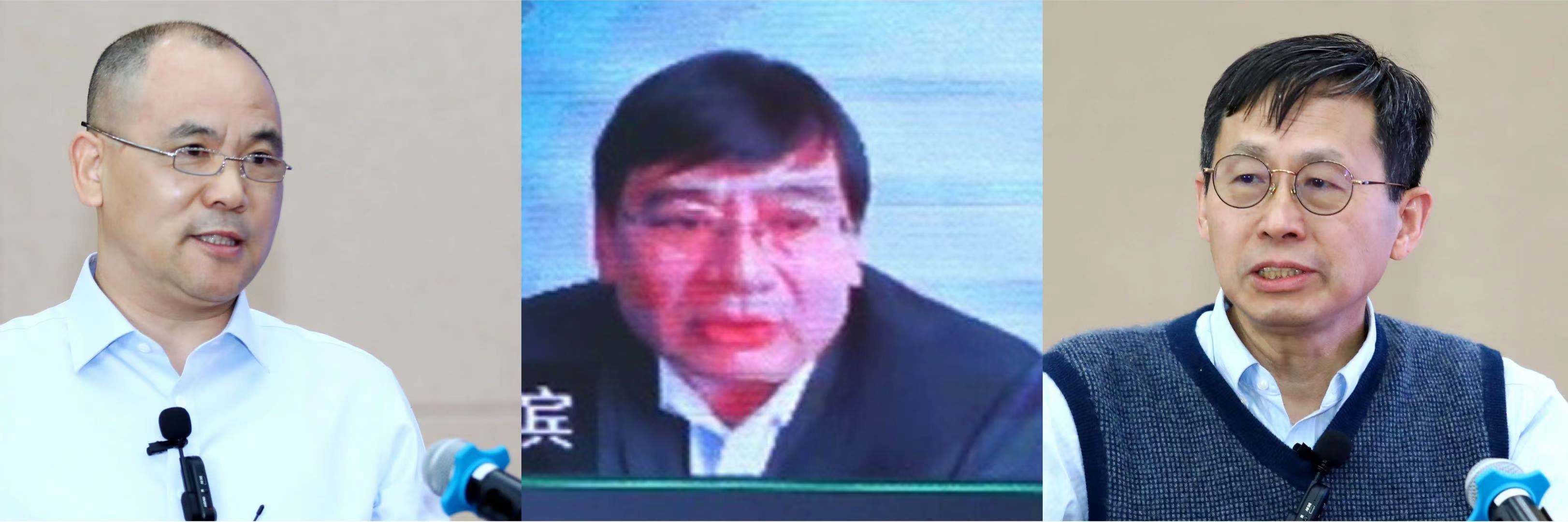 陈解放、曹喜滨、郑泉水作报告(从左至右)