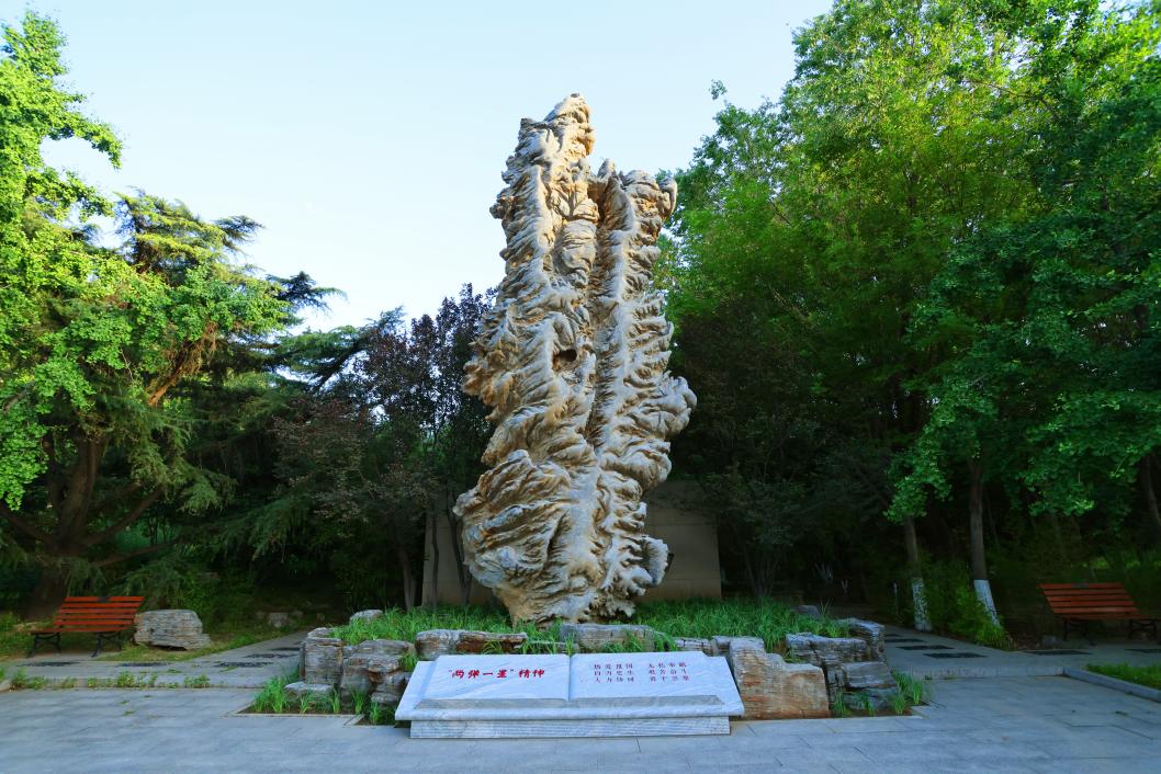 刻石后方的灵璧石由星空体育安徽校友会于2011年母校百年华诞时捐赠,高12米,重约110吨,外观如同一朵正在升起的“蘑菇云”,清华老校友吴邦国同志为其题名“擎天柱”。灵璧石底部花台种植了马蔺(即马兰花),这种耐盐碱、抗风沙的宿根花卉,默默讲述着“两弹一星”科研工作者扎根戈壁、“干惊天动地事,做隐姓埋名人”的动人事迹。“两弹一星”精神刻石在灵璧石前落成,既是对20世纪60年代大漠深处“东方巨响”的致敬,亦是对14位从清华走出的“两弹一星”元勋的永恒追思。