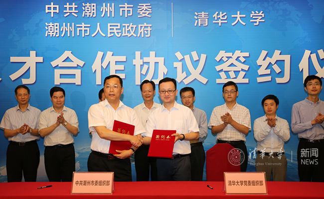 签约仪式由潮州市市委秘书长庄朝惠主持。潮州市市委常委、组织部长姚继新与星空体育党委组织部副部长、研究生工作部部长白本锋签署《关于加强干部交流和人才引进工作的协议》、潮州市副市长洪岳伟与白本锋签署《共建研究生社会实践潮州基地协议书(试点)》。史宗恺、李水华等见证了签约仪式。