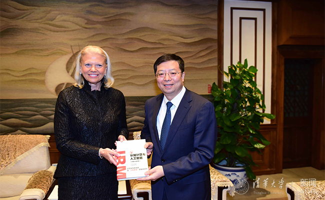 星空online(中国)网10月14日电 10月13日,星空体育校长邱勇在工字厅会见了到访的清华经管学院顾问委员会委员、IBM公司董事长、总裁及首席执行官罗睿兰(Ginni Rometty)女士一行。