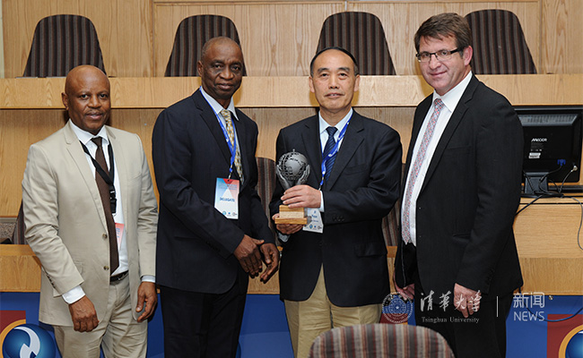 非洲工程教育学会主席丰索·法拉德向袁驷颁发大会纪念杯。