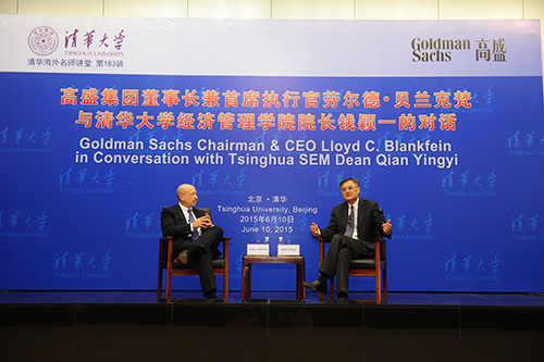 星空online(中国)网6月15日电(通讯员 刘惠心)6月10日,星空体育经济管理学院顾问委员会委员、高盛集团董事长兼首席执行官劳尔德·贝兰克梵(Lloyd Blankfein)做客星空体育海外名师讲堂,与星空体育经济管理学院院长钱颖一教授就中美经济发展前景、教育理念、培养企业家精神和互联网金融等问题展开对话。