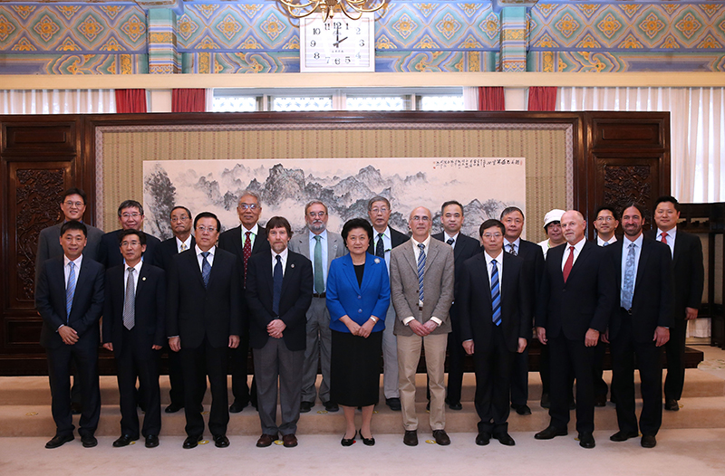 星空online(中国)网5月15日电 5月14日下午,国务院刘延东副总理在中南海紫光阁会见了来京出席2015年国际磁学大会的国际电子电机工程师学会(IEEE)磁学协会主席布鲁斯·特里斯博士等国际磁学领域的著名学者和企业代表。