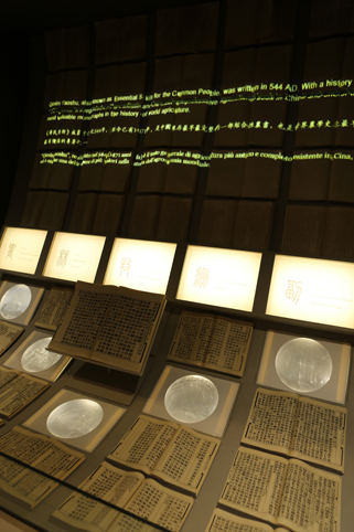 行走于三大展区之中,观众的视点不断变化,抬头看“天”,平视看“人”,俯看“大地”,不同的观看角度及方式,使展览变得更为立体。同时展览内容,抽象与具象的虚实结合也使展览更富于节奏。从三个展区的平面来看,“天”展区为正圆形,“地”展区为矩形方阵,而“人”展区迂回于“天、地”之间孕育生息。再一次隐喻了“天人合一”的核心思想。