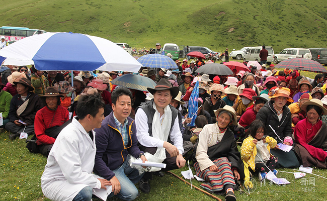 清华长庚医院专家为牧区藏族同胞普及医疗知识。