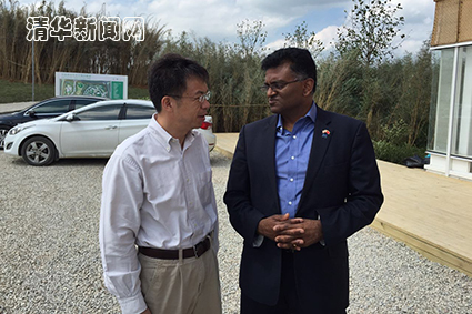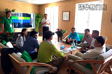 史宗恺与正在示范楼内驻场指挥的清控人居集团副总裁、北京清华同衡规划设计研究院院长袁昕,清控人居集团总裁助理、清控人居集团战略发展与技术应用研发中心副主任谭小川等进行了座谈。北京清华同衡规划设计研究院城市建筑环境与能源研究所总工程师马杰博士详细介绍了创新园内集成应用的海绵城市示范、智慧园区运营和低碳建设模式等多项新技术和新产品。