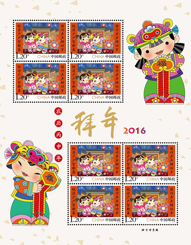 图为《拜年》邮票版式2。